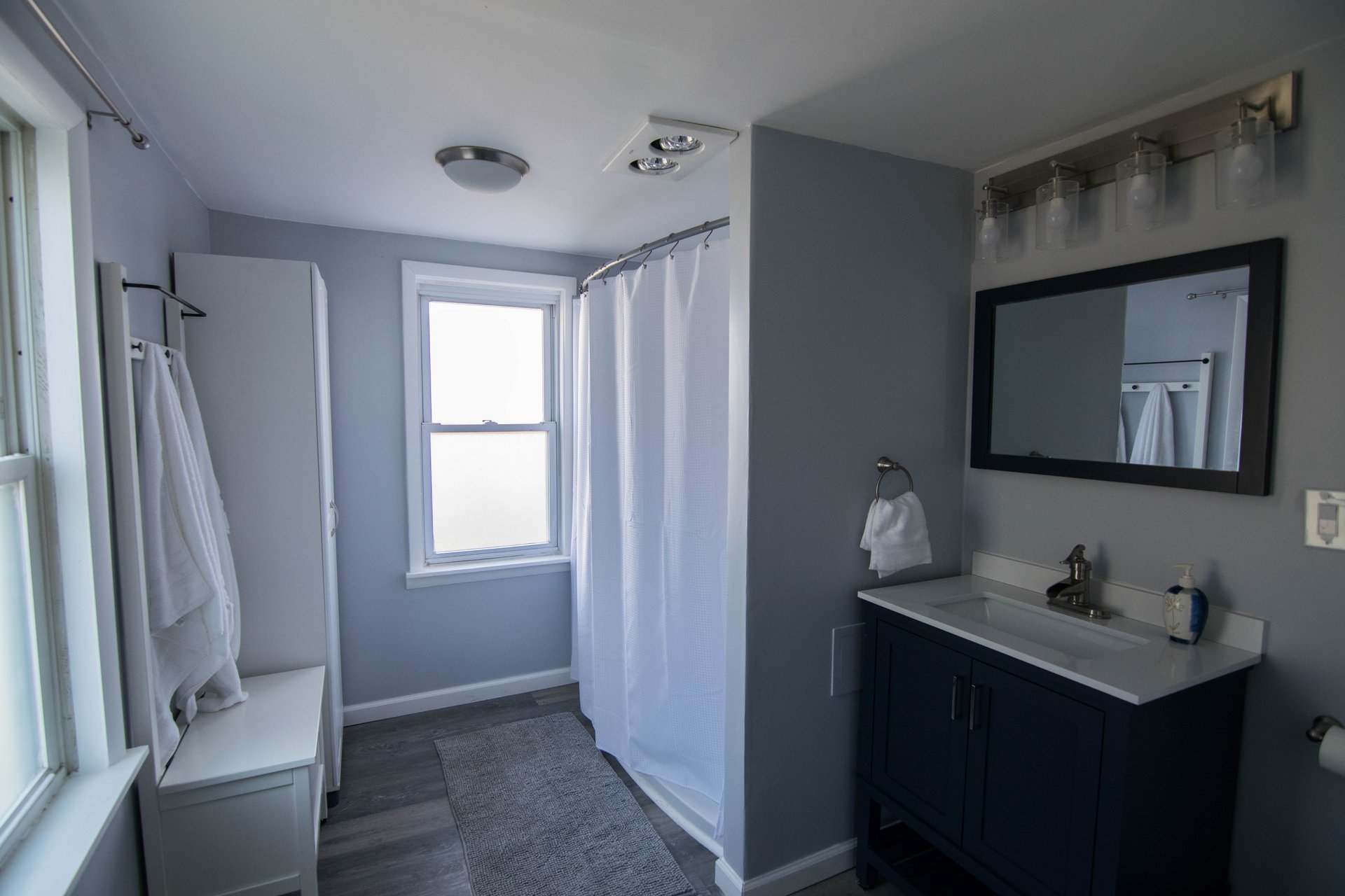The remodeled bath features a spacious full size shower.  There's a large 40 gallon water tank.  We cover electricity, water and trash.